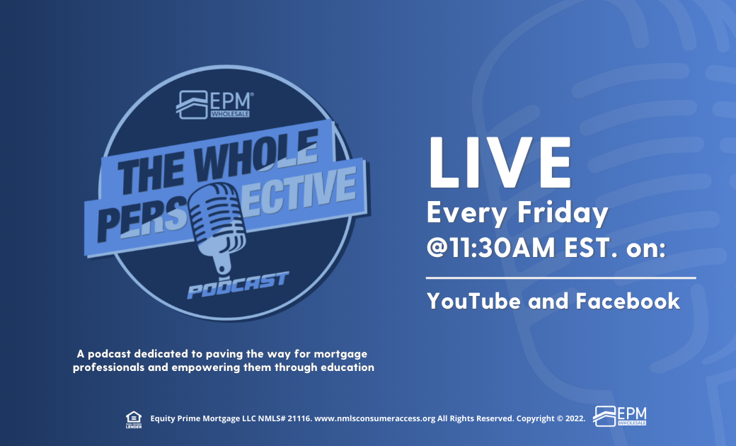 Have you ever wanted a closer look into Mortgage Industry? We are excited to introduce “The Whole Perspective” podcast! 🎙 The Whole Perspective is new a podcast dedicated to paving the way for mortgage professionals and empowering them through education. EPM's own Kevin Delory, Chief Lending Officer, and Kenny Phillips, Senior VP of Lending, will be joined by some of the top mortgage professionals to discuss topics such as building partnerships and utilizing technology to defining your value. Join us live every Friday @11:30am est. in the private Broker Success Facebook Group and on EPM's Youtube LIVE as we break down the structures into understanding the mortgage industry and learn what makes it successful.